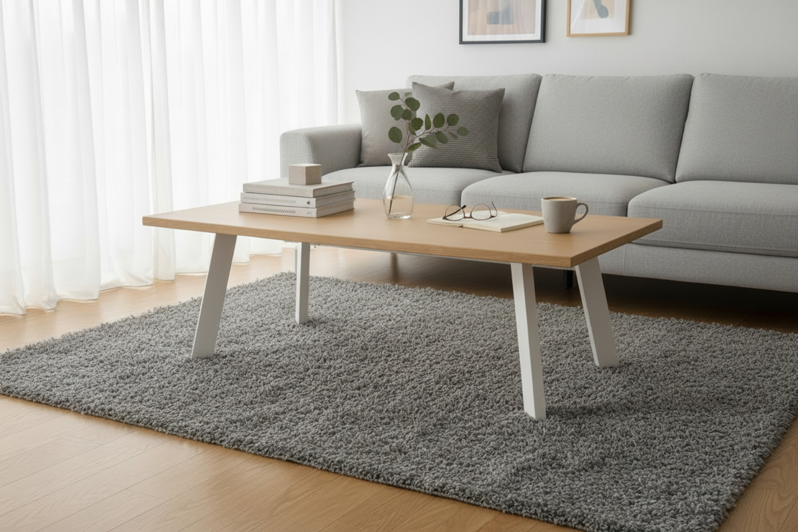 With its textured tabletop and four angled metal legs, it fits perfectly in a contemporary living room. The table is made of high-quality materials that ensure durability and stability. Its minimalist appearance makes it easy to match with various interior styles, from Scandinavian to industrial.
