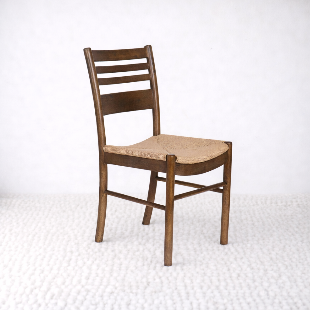 Discover this beautiful wooden chair that combines classic design with modern functionality. With its solid wood in a rich, warm finish and a seat made of durable pep, this chair is both sturdy and comfortable. The straight lines and open backrest design give an airy impression, while the hand-woven seat offers a soft contrast to the robust wood.
