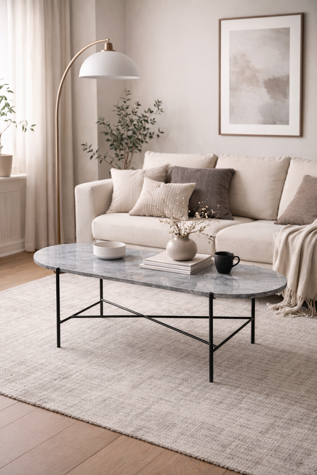 Den svarta metallunderredet är robust och ger en stabil bas som kompletterar marmorns elegans på ett sofistikerat sätt. Metallens pulverlackerade yta är både stilren och hållbar, vilket gör bordet enkelt att underhålla och perfekt för dagligt bruk.