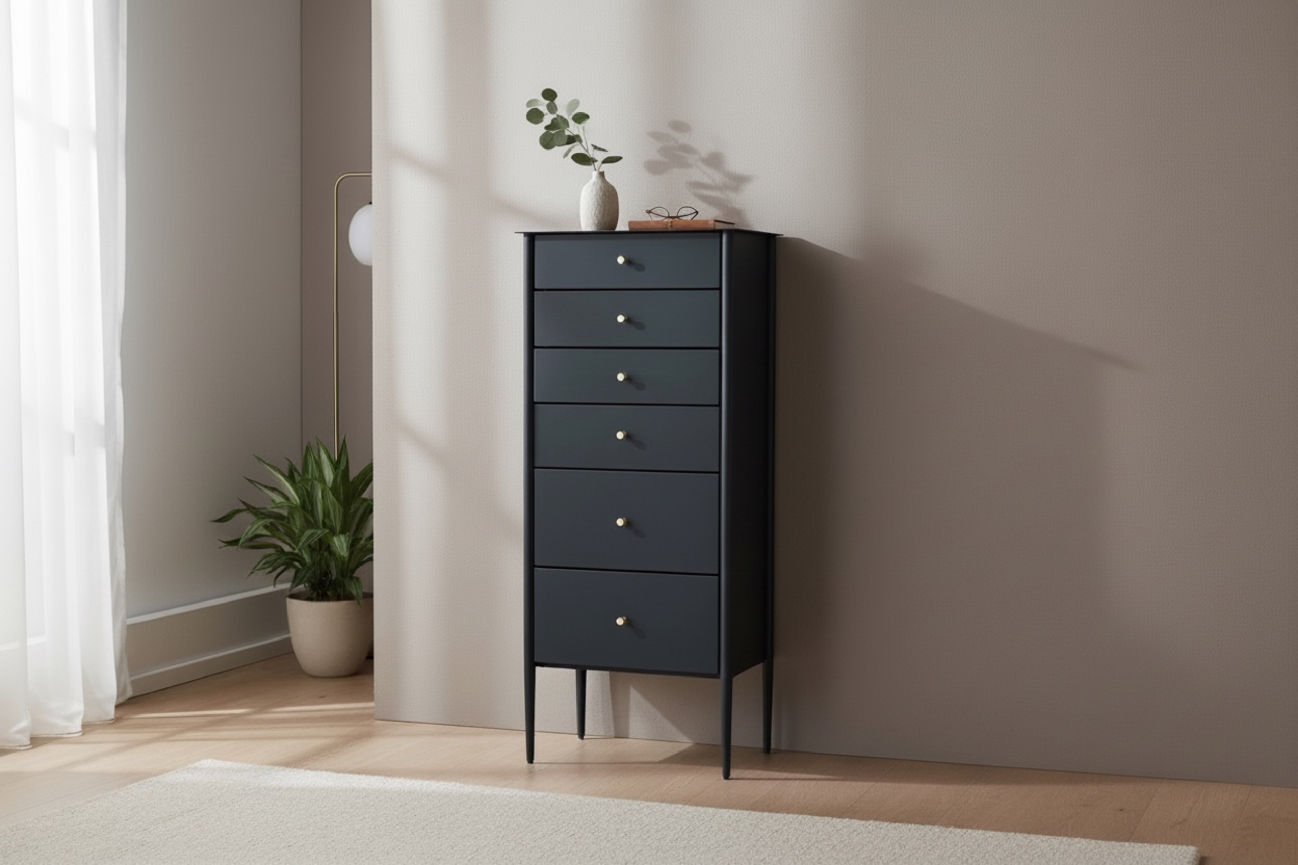 Byrå i svart eller vit pulverlackerad metall.
