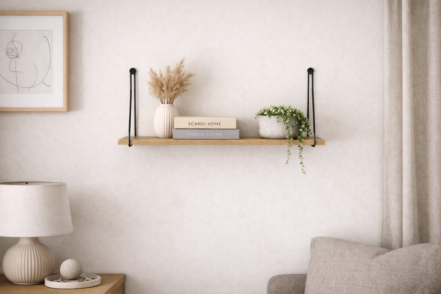 Vägghylla med 1 hyllplan i melamin och konsoll i metall.
