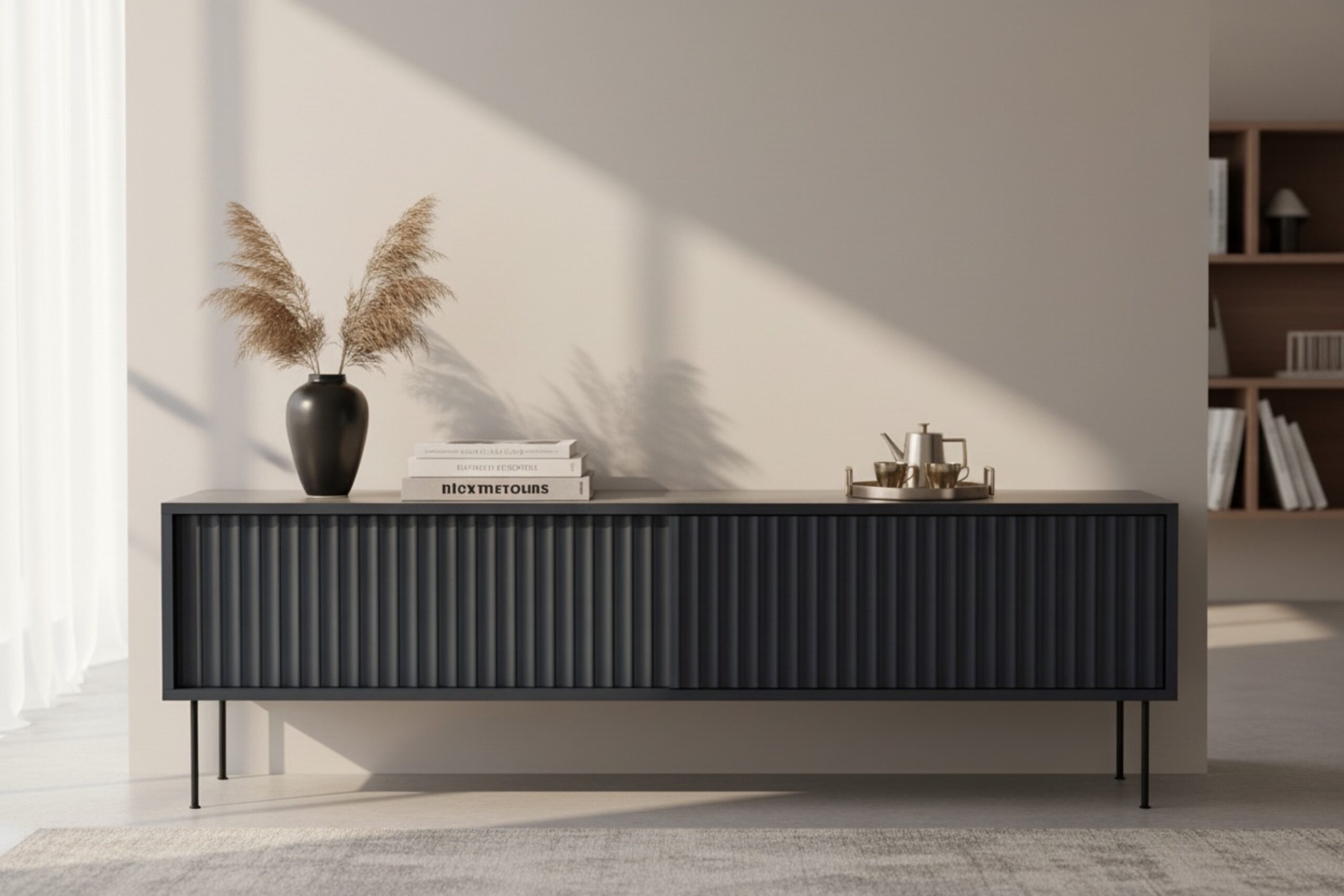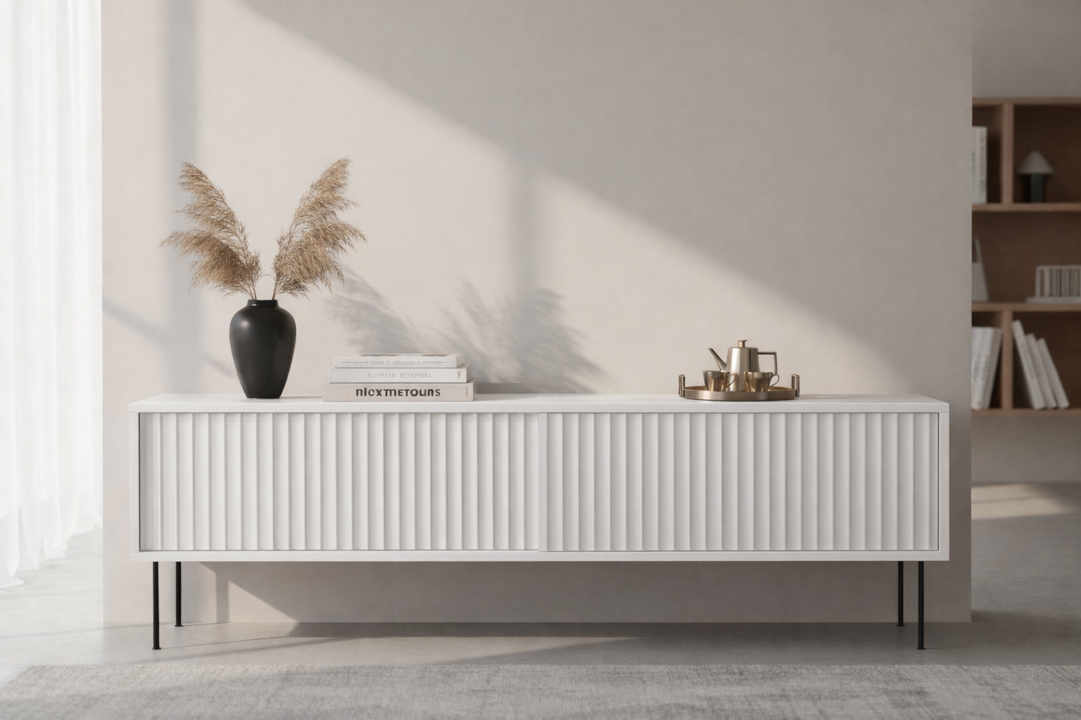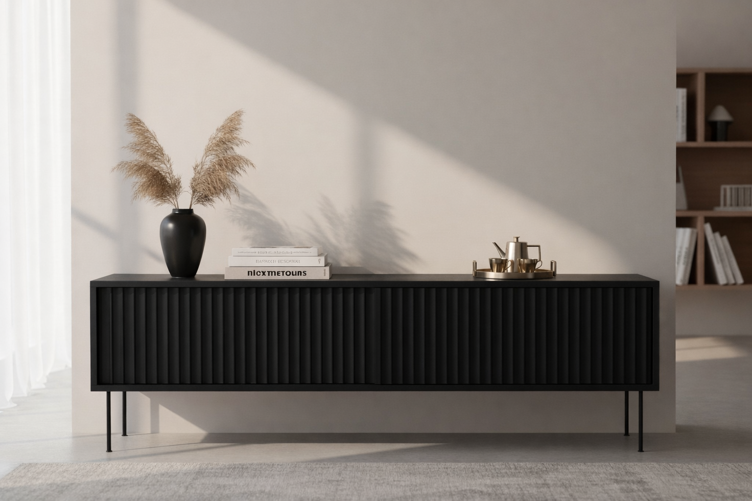 Med sin moderna design och praktiska lösning erbjuder den inte bara ett elegant tillskott till ditt vardagsrum utan även en smart förvaring för dina mediaenheter, böcker eller dekorationer.