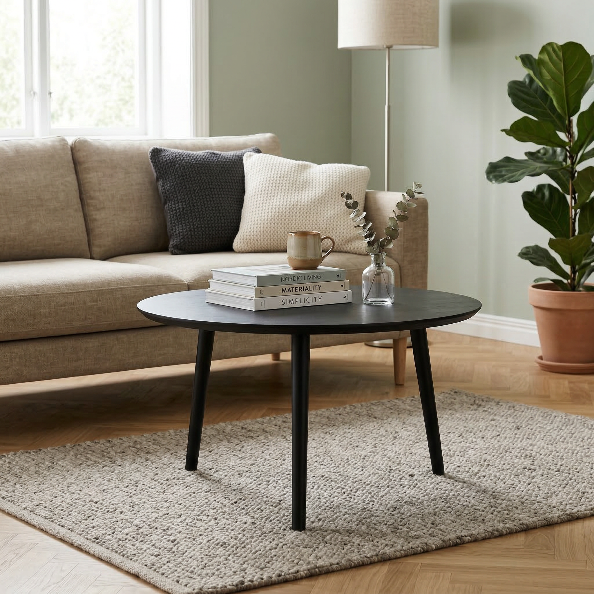 Runt Soffbord i Ek – Naturlig Elegans för Ditt Vardagsrum