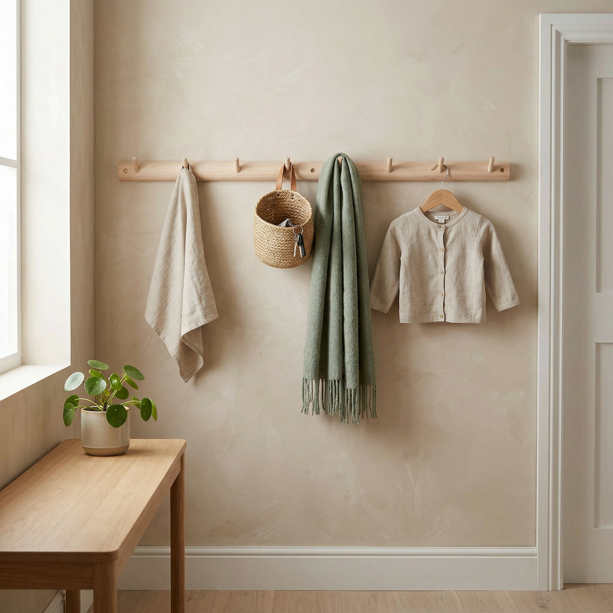 Kroklist i vitoljad ekStilren kroklist i massiv ek med åtta rundade träkrokar. Den passar perfekt i både hall, kök eller sovrum. Enkel att montera.